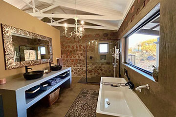 Enjoy a tranquil and untroubled getaway at this cottage in the Karoo, nestled in a valley on the farm Egmont, Hopetown district, Northern Cape. You can expect an open-plan layout offering an en-suite bedroom and a fully equipped kitchen. The living room has a fireplace to which you can snuggle during the cold winter months. It opens with stacking doors to a porch with a built-in braai and a splash pool (which can be heated with a built-in wood fire heating system). The cottage is also fully solar-powered; some good news when load-shedding gets in the way!